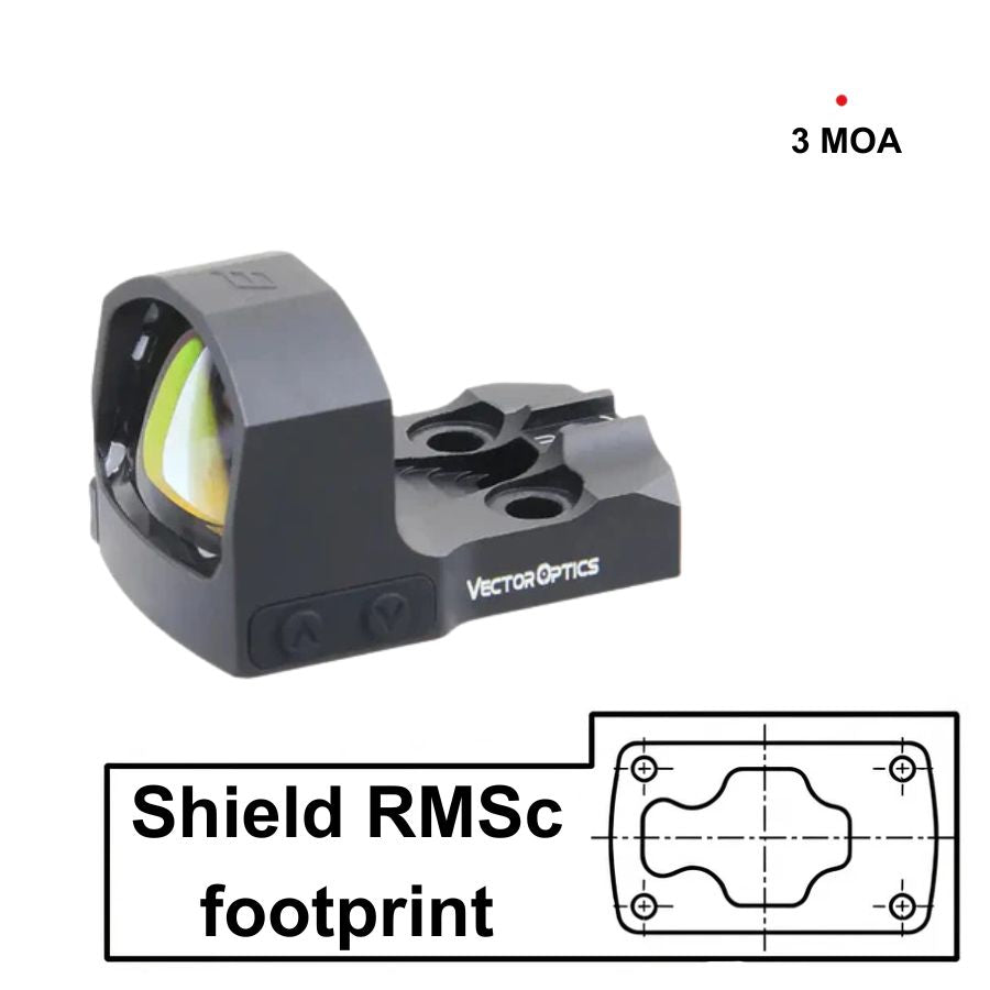 Acest colimator folosește standardul de footprint Shield RMSc.