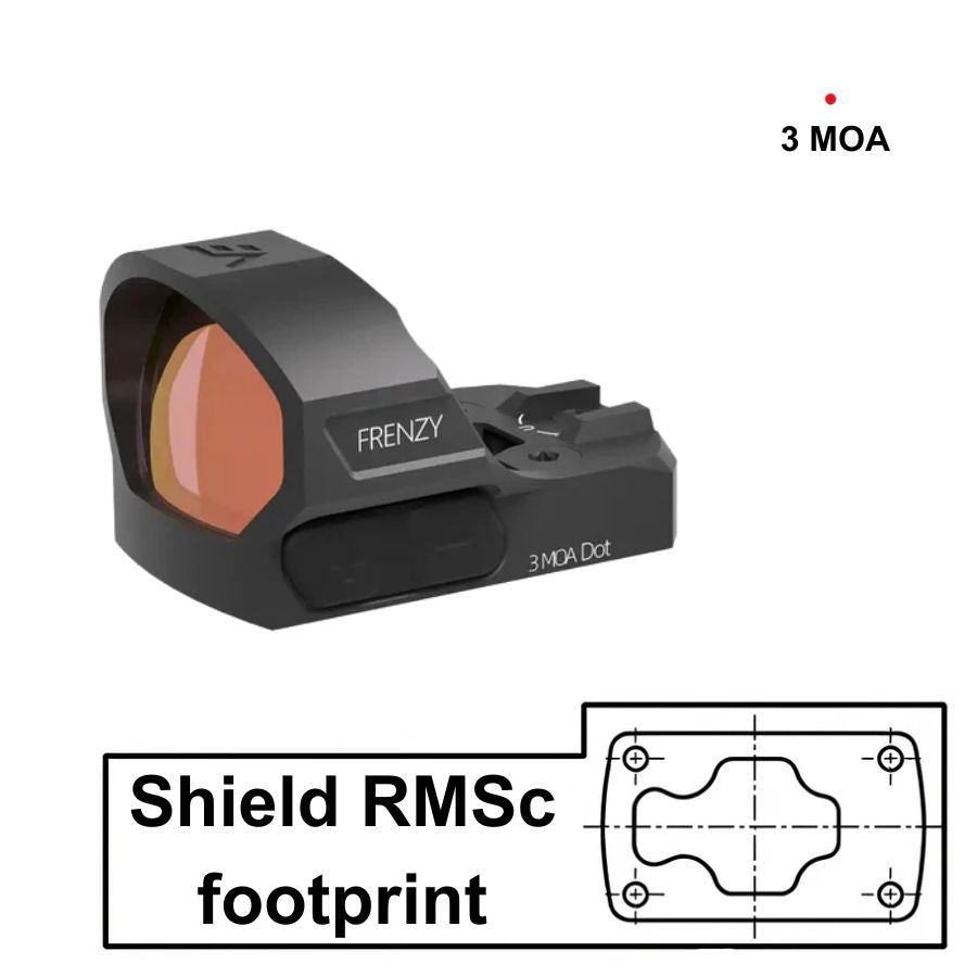 Acest colimator folosește standardul de footprint Shield RMSc.