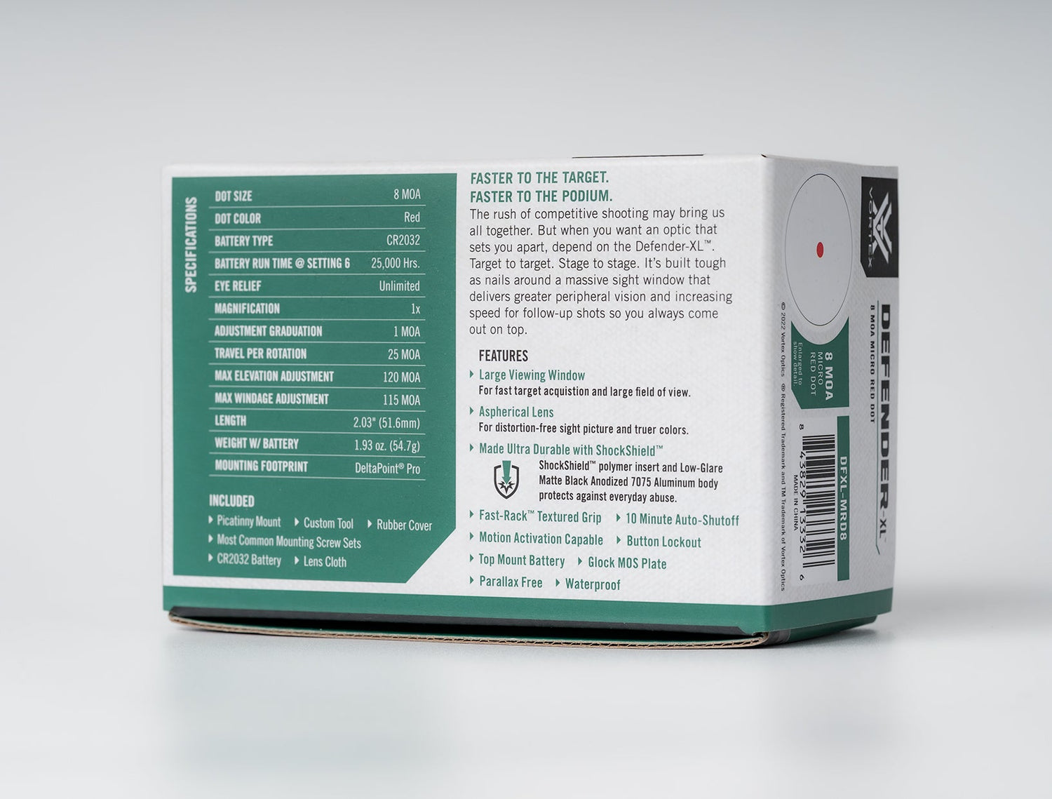Proiectat în jurul unui geam de vizare ultra-lat pentru tranziții mai rapide între ținte, Defender-XL este un colimator micro robust, pregătit pentru competiții, care funcționează excelent și pe pistoale de serviciu sau pentru poligon—precum și pe carabine/puști cu țeavă lisă când este folosit cu montura Picatinny inclusă.